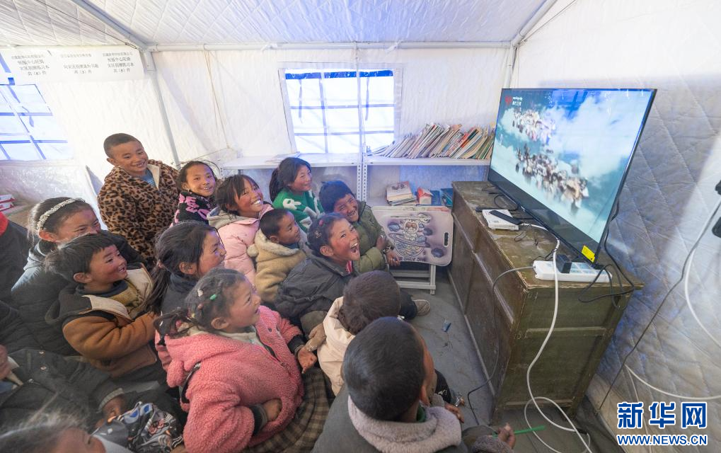在定日縣長所鄉(xiāng)嘎布村,孩子們在看《西游記》(1月14日攝)。 新華社記者 丁增尼達 攝