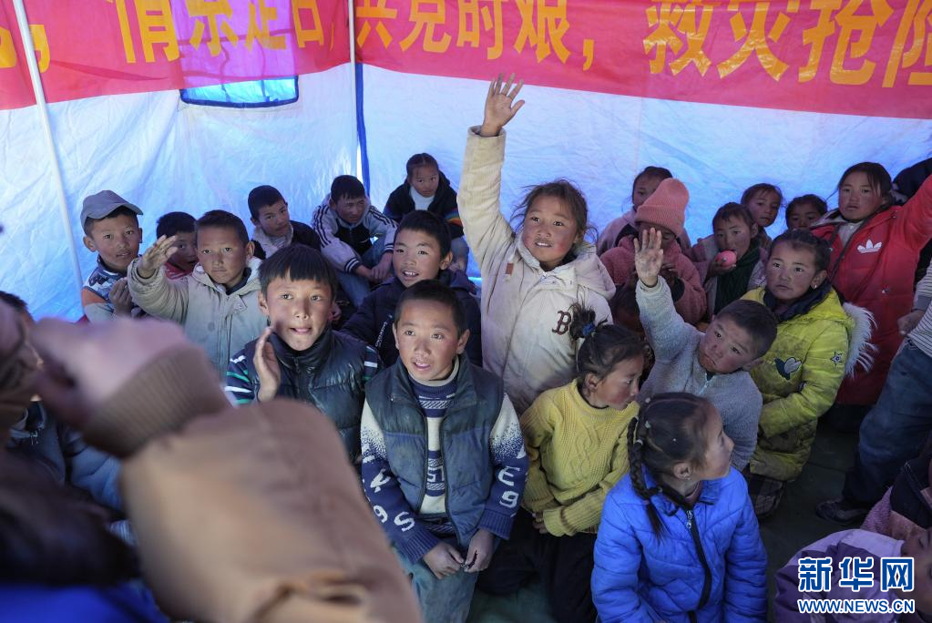 1月11日,災區(qū)的孩子們領到了愛心人士捐贈的玩具。新華社記者 晉美多吉 攝