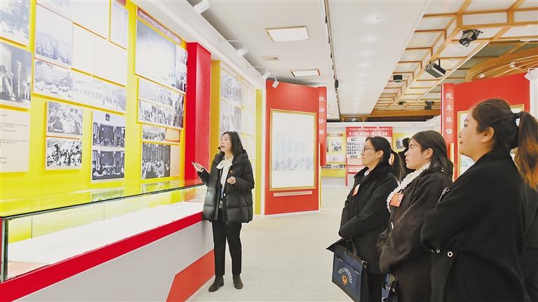 圖為1月21日,委員們?cè)谡f(xié)西藏自治區(qū)委員會(huì)黨員干部基地參觀西藏政協(xié)歷史展。 記者 曲珍 攝