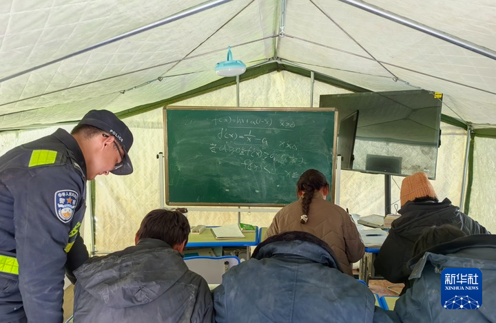 “大家看一下這道題怎么解?”在西藏日喀則市定日縣長(zhǎng)所鄉(xiāng)嘎布村安置點(diǎn)的帳篷內(nèi),22歲的劉鑫磊一手指著黑板上的題目,一手拿著資料,耐心地給村里的高三學(xué)生講解。
