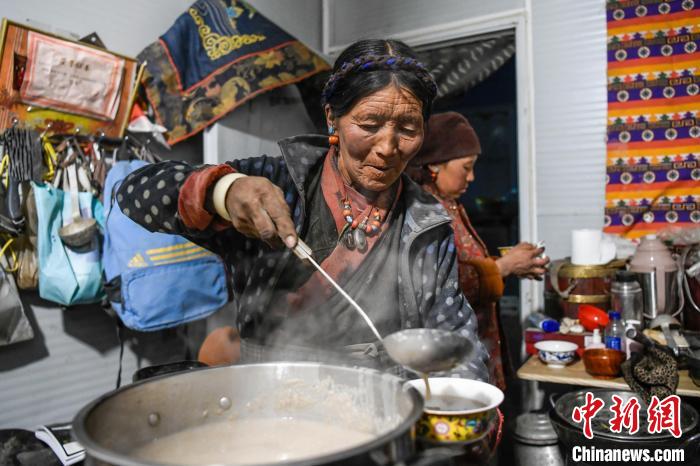 “今年我們家的‘古突’(一種藏式面食)里有面疙瘩、牛肉、蕨麻、奶渣、米飯,很香、很好吃?!?月28日是農(nóng)歷春節(jié)除夕,恰逢日喀則農(nóng)事新年“古突夜”,在西藏定日縣曲洛鄉(xiāng)措昂村安置板房內(nèi),20歲的央宗喝完一碗母親煮的“古突”后對中新社記者說。