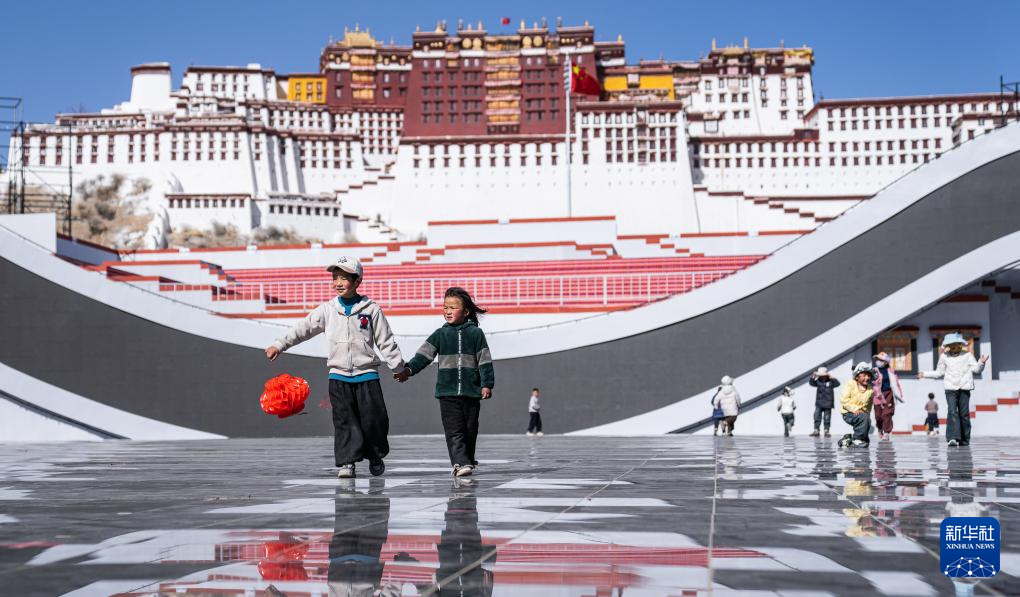 2月2日,孩子們在布達(dá)拉宮廣場玩耍。新華社記者 丁增尼達(dá) 攝