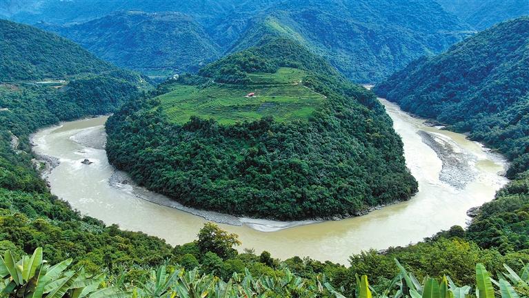 其實(shí),果果塘大拐彎里還藏著一枚新年大型“彩蛋”——這里又稱作雅魯藏布江蛇形大拐彎。由雪域高原的百川匯流而成的雅魯藏布江,在果果拉山附近繞了一個(gè)大彎。站在德興鄉(xiāng)的觀景臺(tái)上眺望,人們便會(huì)發(fā)現(xiàn)這里宛如一條碧青的長(zhǎng)蛇盤踞在蒼翠茂盛的雨林之間,蔚為壯觀。