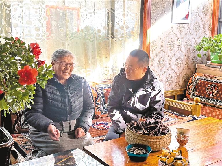 圖為拉薩市人民政府辦公室相關負責人與離退休干部職工親切交談。記者 劉琳琳 攝