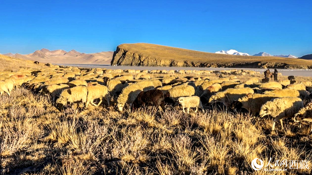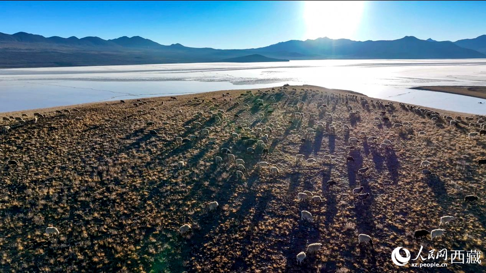 普莫雍錯(cuò)“冰上趕羊”,是當(dāng)?shù)啬撩袷来鄠鞯墓爬现腔?。每年冬季,由于推瓦村海拔高、夏季短,草場無法為羊群提供充足的過冬飼料。因此,每年高原最冷的時(shí)候,推瓦村牧民會把羊群趕到普莫雍錯(cuò)水草豐茂的湖心島,依靠島上的草料度過最寒冷的冬期。