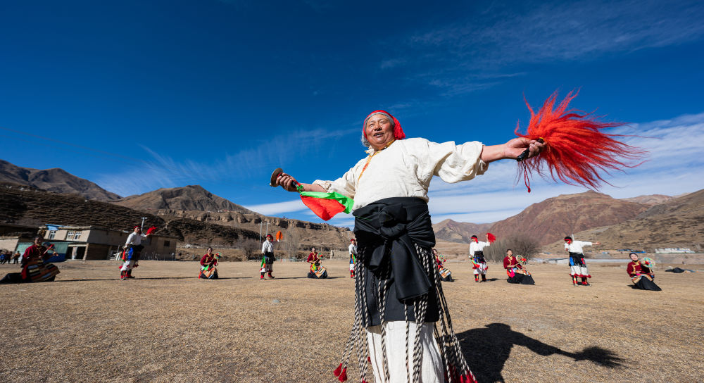 新年伊始,在西藏昌都市丁青縣尺犢鎮(zhèn)的草壩上,烏巴村文藝演出隊正在熱火朝天地排練。盡管寒風(fēng)凜冽,但激昂的鼓點和熱烈的音樂,讓這片土地充滿了生機與活力。
