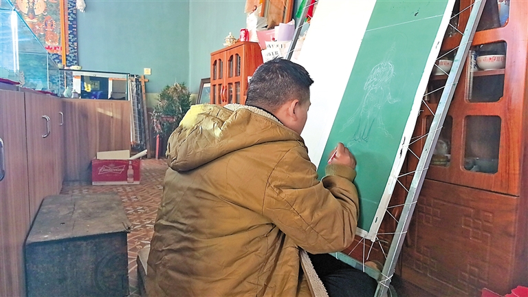 “那段時(shí)間是最難熬的,每天睜開(kāi)眼除了吃飯,其他時(shí)間都在畫(huà)畫(huà)?!甭遄犯嬖V記者,當(dāng)他真正開(kāi)始學(xué)習(xí)時(shí),才深刻體會(huì)到要想成為唐卡手藝人,需要付出更多努力。“也曾想過(guò)放棄,但還是咬咬牙堅(jiān)持了下來(lái)?!闭f(shuō)到這里,洛追有些靦腆地笑了笑。