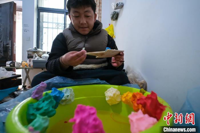 “我大概從初中一年級開始,每年藏歷新年前都和父親來拉薩捏酥油花,除了種地和打工,酥油花是我們家的主要收入來源。”2月20日,在拉薩市城關(guān)區(qū)吉崩崗街道一出租房內(nèi),24歲的大學(xué)生扎西歐珠對中新社記者講述寒假捏制酥油花的經(jīng)歷。