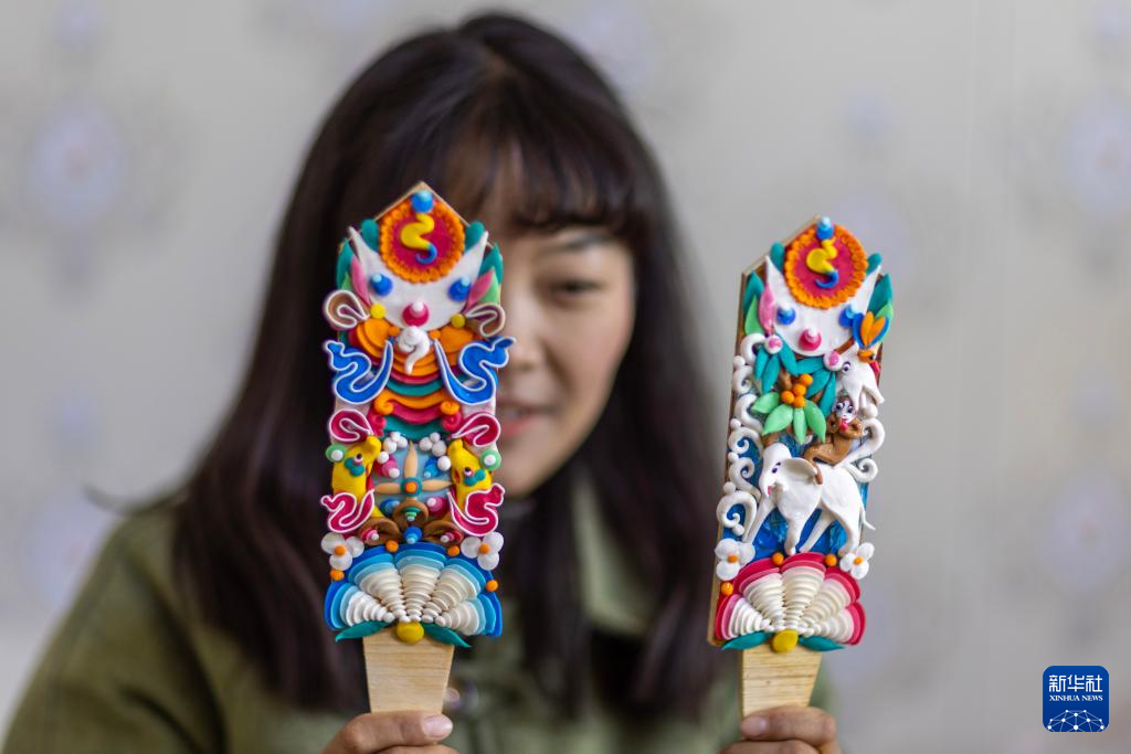在拉薩市老城區(qū),小學(xué)徒在展示剛剛做好的一對酥油花(2月25日攝)。新華社記者 晉美多吉 攝