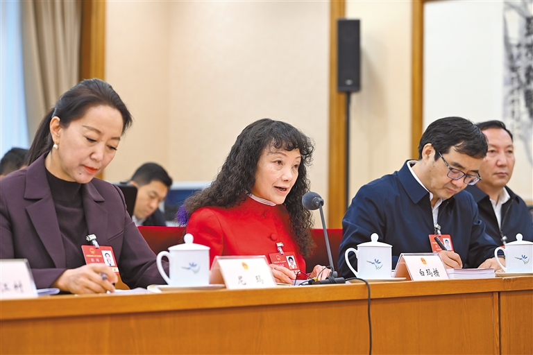 西藏全國人大代表在西藏代表團(tuán)會議上發(fā)言。記者 旦增西旦 攝