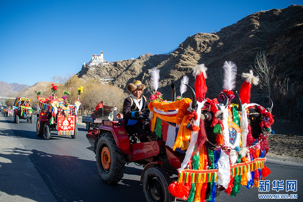 3月16日,西藏山南市乃東區(qū)門中崗社區(qū)的群眾正前往春耕儀式現(xiàn)場(chǎng)。新華網(wǎng) 旦增努布 攝