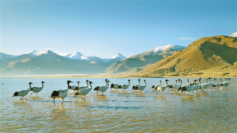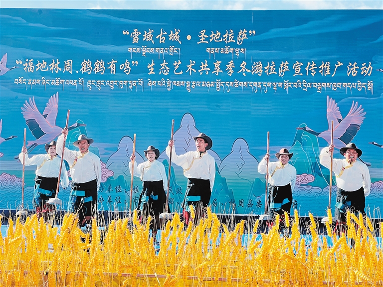 當(dāng)溫暖的陽(yáng)光輕柔地灑在拉薩河谷,黑頸鶴清脆的鳴叫聲喚醒了林周濕地寧?kù)o的清晨?!案5亓种堋Q鶴有鳴”生態(tài)藝術(shù)共享季之“冬游拉薩”宣傳推廣活動(dòng),以歌舞表演、生態(tài)主旨演講、黑頸鶴攝影作品展、鶴文化專家座談等,融合了生態(tài)、藝術(shù)與文化的盛宴,讓人在雪山、湖泊與鶴影交織的詩(shī)意中,感受“冬游拉薩”的獨(dú)特魅力。