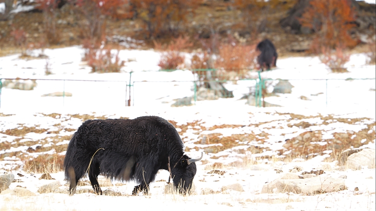 圖為雪地中的牦牛。林周融媒提供