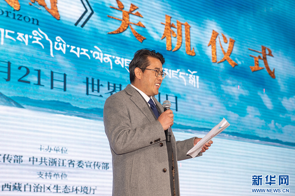 3月21日,西藏出品方代表、西藏影視文化有限公司董事長(zhǎng)索朗次仁在活動(dòng)現(xiàn)場(chǎng)發(fā)言。新華網(wǎng) 旦增努布 攝