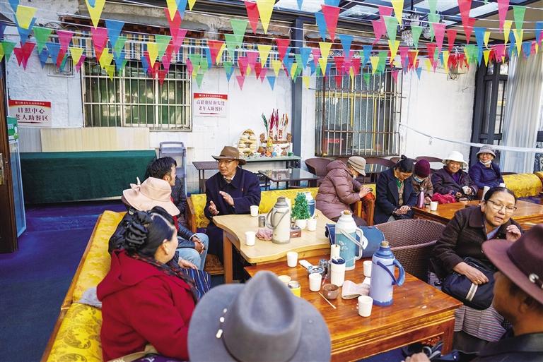 1956年出生的赤來,是策門林老年日間照料中心的常客,他和老伴居住在拉薩市城關區(qū)八朗學社區(qū),已在拉薩生活了30多年?;貞浧疬^去的歲月,赤來感慨萬千:“聽我爺爺奶奶說,以前的生活真的很苦,我們住在帳篷里,靠放牧為生,經(jīng)常挨餓受凍?,F(xiàn)在黨和政府的政策好,我們的生活發(fā)生了翻天覆地的變化。”談起如今的生活變化,赤來認為最直觀、最明顯的就是住房條件的改善,“我的老家在那曲,那里海拔高、氣候寒冷,到了冬天,寒風會灌進帳篷,大家凍得直打哆嗦。那時候,能有個不漏風的帳篷住就不錯了,哪里敢奢望現(xiàn)在這樣的生活。”