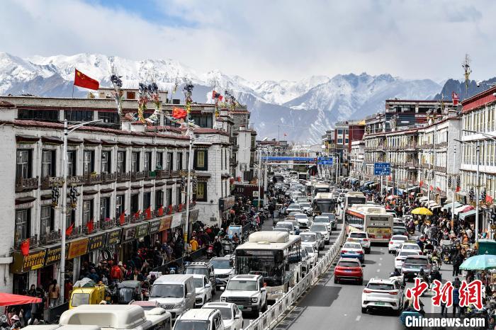 2月21日,拉薩市中心熱鬧街景。中新社記者 貢嘎來(lái)松 攝