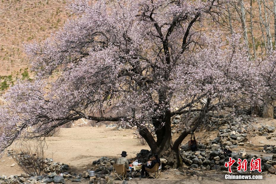 3月下旬,高原已是一片春意。西藏拉薩市區(qū)拉薩河南岸慈覺(jué)林的古桃樹(shù)進(jìn)入盛花期,3月30日恰逢周末,不少市民游客前往賞花“打卡”,在桃樹(shù)下野餐等,享受高原春日風(fēng)光。圖為3月30日,民眾在拉薩慈覺(jué)林桃樹(shù)下野餐,享受悠閑時(shí)光。江飛波 攝