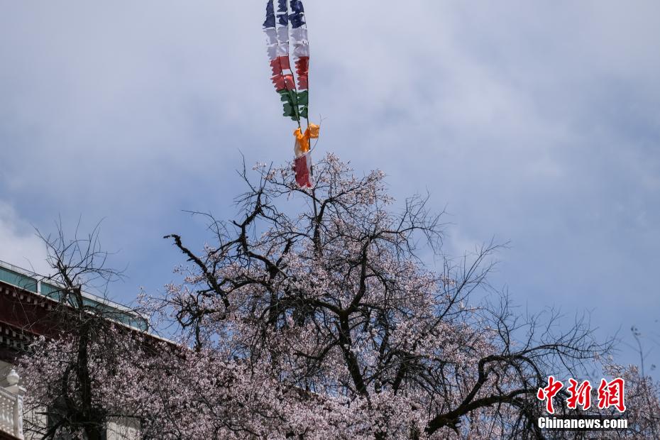 3月下旬,高原已是一片春意。西藏拉薩市區(qū)拉薩河南岸慈覺(jué)林的古桃樹(shù)進(jìn)入盛花期,3月30日恰逢周末,不少市民游客前往賞花“打卡”,在桃樹(shù)下野餐等,享受高原春日風(fēng)光。圖為3月30日,拉薩慈覺(jué)林的桃花。桃樹(shù)上是藏族民眾在藏歷新年時(shí)綁的經(jīng)幡。江飛波 攝