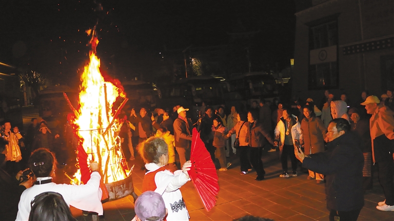 圖為游客和當(dāng)?shù)厝罕娫隗艋鹎肮餐鹞琛?記者 武沛濤 攝