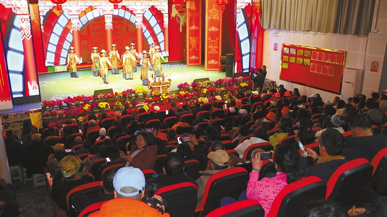 圖為游客在山南市觀看文藝演出。 記者 武沛濤 攝