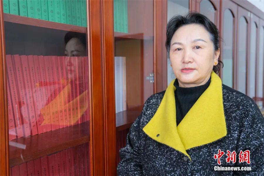 2025年3月20日,巴桑卓瑪在辦公室,其身后是近年在西藏各地調(diào)研的資料。中新社記者 江飛波 攝。
