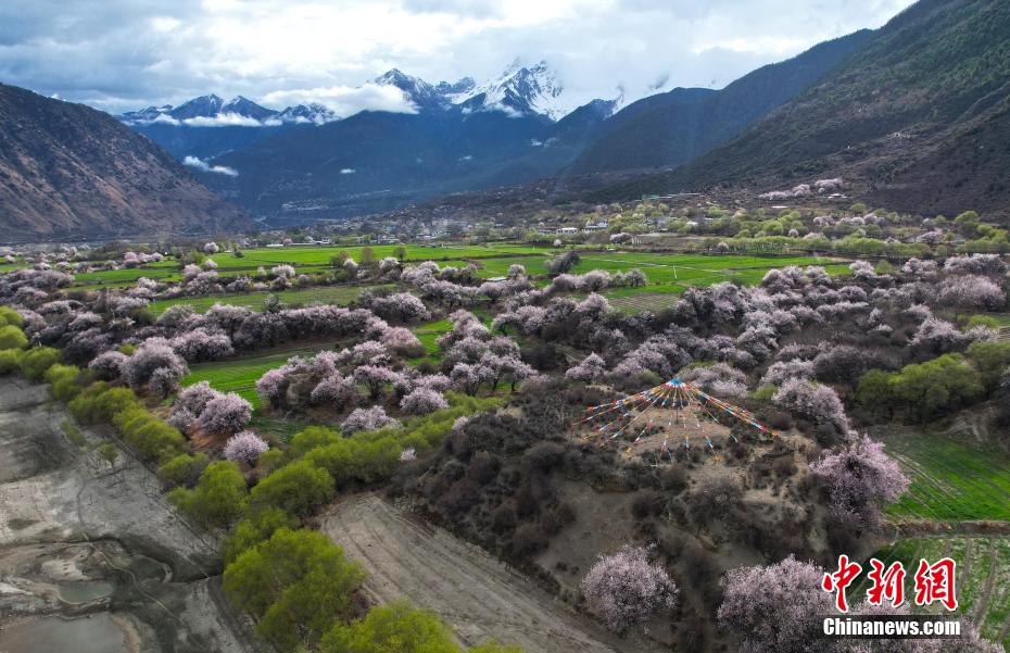 4月4日,西藏林芝市雅魯藏布江沿線桃花風光。每年3月下旬,西藏林芝雅魯藏布江沿線桃花綻放,與雪山、鄉(xiāng)村、田野共同組成高原獨特風光,美不勝收。(無人機照片)