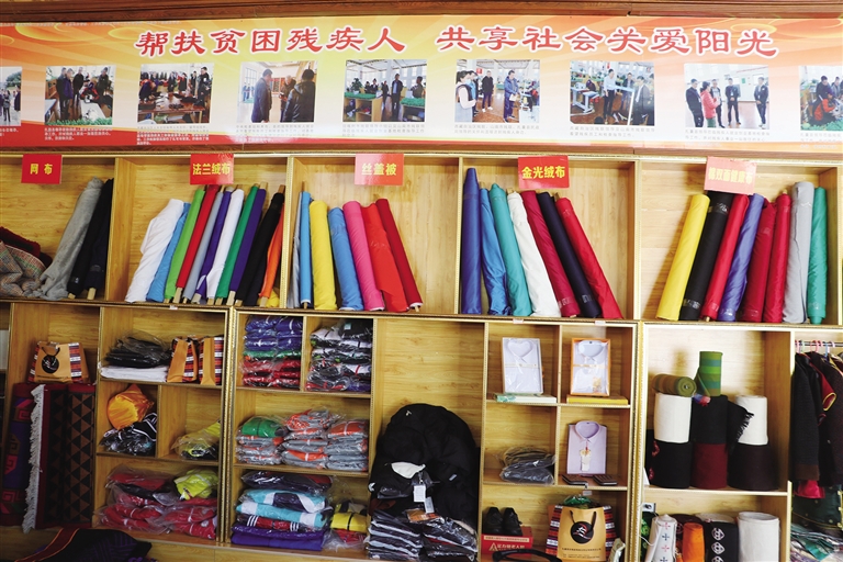 在基地展示區(qū)左側,掛滿了學生校服、區(qū)內七市地的傳統(tǒng)藏裝以及疊放整齊的加厚棉被;右側展示著“全區(qū)助殘先進集體”“國家級殘疾人職業(yè)培訓基地”等榮譽證書。據拉瓊介紹,該基地的企業(yè)年收入從2018年的18萬元增長到2024年的48.56萬元,年均增長率達21.6%,產品不僅覆蓋山南本地,還銷往那曲、阿里等市地。