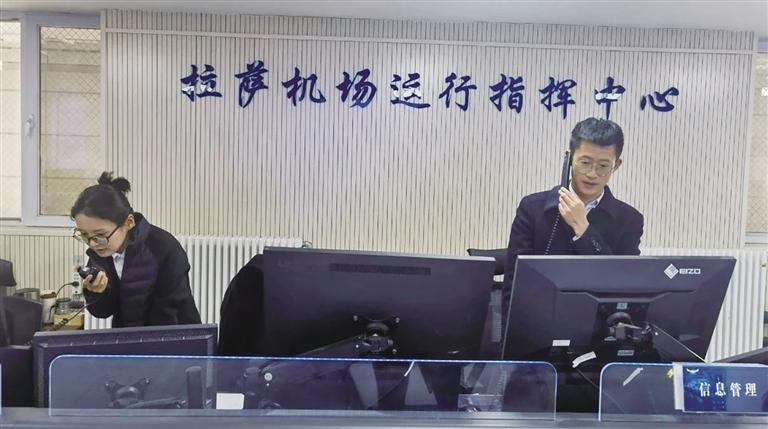 拉薩貢嘎國(guó)際機(jī)場(chǎng)運(yùn)行指揮中心緊急調(diào)度機(jī)位,保障旅客轉(zhuǎn)機(jī)。圖片由 張偉 提供