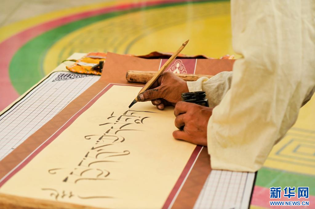在活動(dòng)現(xiàn)場(chǎng)寫(xiě)下藏文書(shū)法“春日書(shū)會(huì)”。(受訪(fǎng)者供圖)