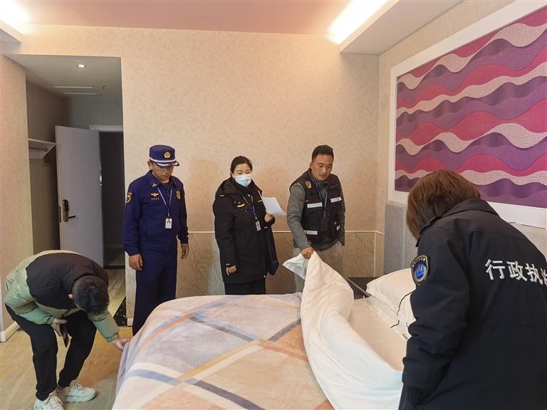 文旅部門(mén)對(duì)酒店進(jìn)行檢查。 圖片由自治區(qū)文旅廳執(zhí)法監(jiān)督處提供