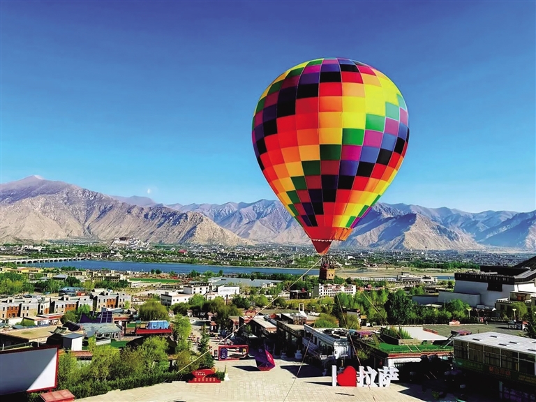游客可乘熱氣球升至百米高空,俯瞰布達(dá)拉宮,遠(yuǎn)眺拉薩河,在《文成公主》經(jīng)典配樂(lè)中完成“穿越千年,翱翔圣城”的時(shí)空對(duì)話。