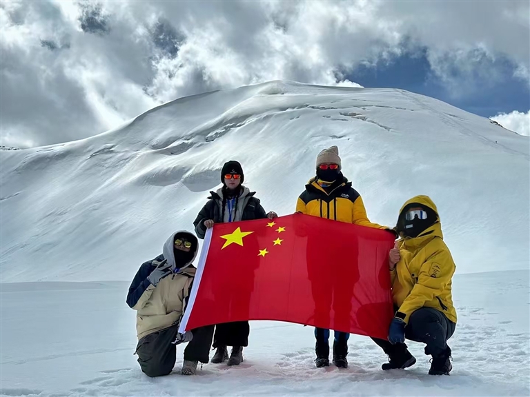 鄒師思告訴記者:“登山過程中,我們團隊展現(xiàn)了高度的專業(yè)性與協(xié)作力。學(xué)院領(lǐng)導(dǎo)提前提供物資與精神支持,專業(yè)教練指導(dǎo)徒步與技術(shù)訓(xùn)練。在海拔5500—6000米段,隊伍統(tǒng)一行軍節(jié)奏,避免體溫流失或體力透支;登頂時,訓(xùn)練突出者率先觸頂,為體力較弱者提供鼓勵與幫助?!彼锌骸皥F隊協(xié)作是登頂?shù)年P(guān)鍵,真正的勇氣源于科學(xué)準(zhǔn)備與戰(zhàn)略堅持?!?/p>
