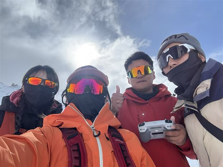 今年是“95后”貢曲羅杰第二次登頂,盡管去年參加過洛堆峰登山探險活動,可雪山的魅力依舊讓他深深著迷?!拔铱粗鵁o人機拍攝下登山者們依次攀爬的過程,莫名激動。而當(dāng)我將焦距調(diào)至七倍對準(zhǔn)山頂時,雪山更是讓我震撼,這就是我一直想要記錄的畫面?!必暻_杰說。為了能精準(zhǔn)調(diào)整相機參數(shù),他放棄了保暖必需的手套,一心專注拍攝,直至完成任務(wù)。此次攀登洛堆峰,貢曲羅杰和阿旺尼瑪拍攝了大量出彩的視頻和圖片。