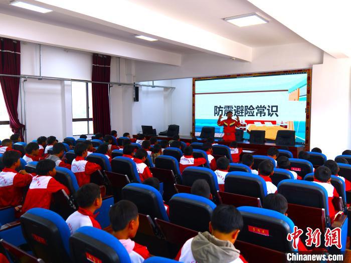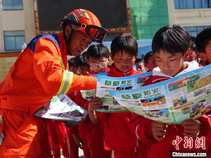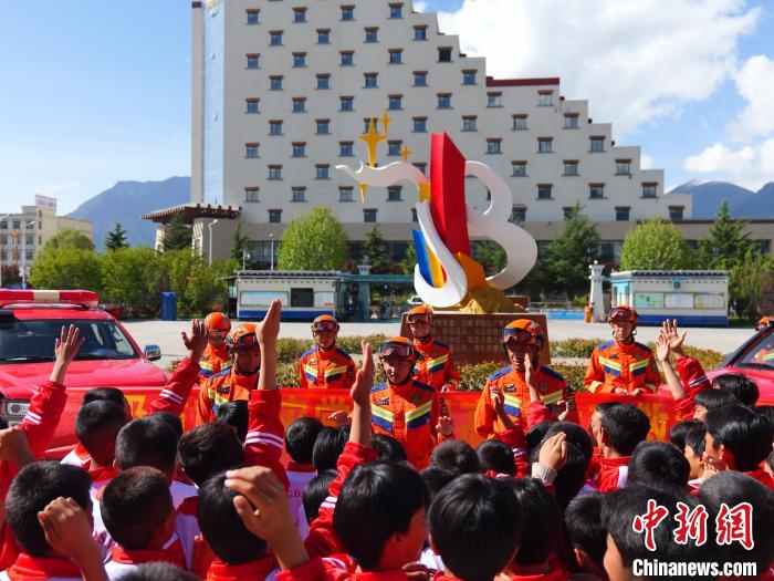 圖為消防救援人員組織學生進行防災減災知識互動。林芝森林消防支隊供圖
