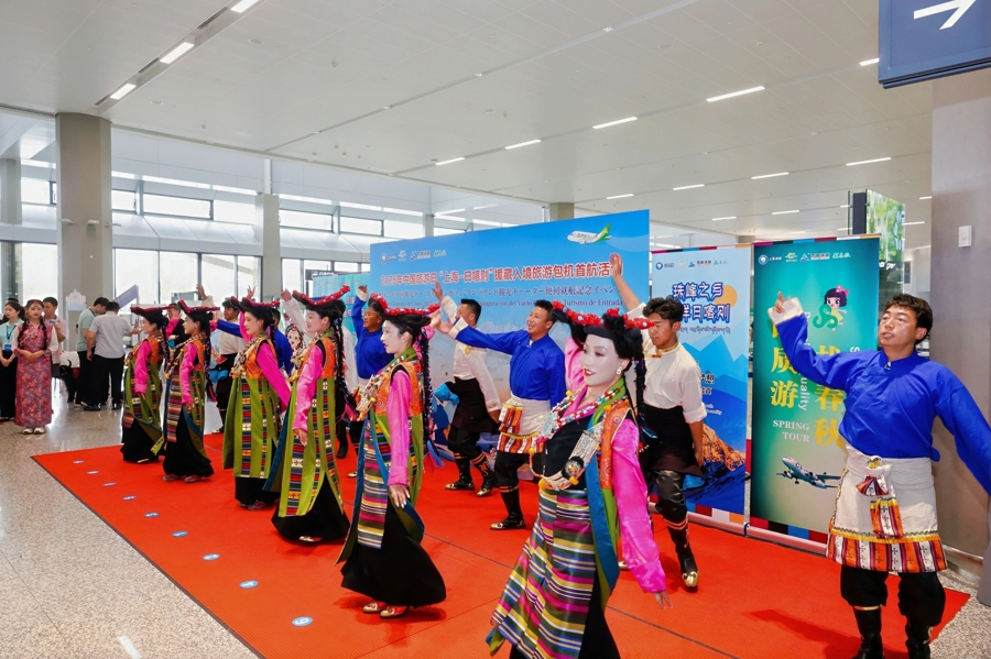 在熱情奔放的藏族歌舞“快閃”演出之后,5月18日上午,“上海-日喀則”援藏入境旅游包機在虹橋國際機場舉行首航儀式。本次活動是近年來西藏自治區(qū)規(guī)模最大的入境包機游客團組,也是日喀則首次迎來入境旅游包機、首次舉辦國際性文旅體融合特色活動。