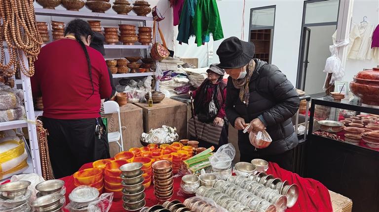參展商們也在最后一天全力沖刺,來(lái)自不同地域、經(jīng)營(yíng)不同品類(lèi)商品的商家在展會(huì)上均收獲頗豐。來(lái)自尼泊爾的新白瑪塔西綜合商店老板拉魯,此次展銷(xiāo)會(huì)帶來(lái)了木碗、玉碗、銅碗等二十多類(lèi)特色產(chǎn)品。他笑著表示:“銷(xiāo)量挺不錯(cuò)的,我們家的產(chǎn)品不僅品類(lèi)豐富,價(jià)格也實(shí)惠。這已經(jīng)是我第八次來(lái)拉薩參加展銷(xiāo)會(huì)了,每次都能感受到拉薩消費(fèi)者的熱情,也收獲滿(mǎn)滿(mǎn)。”
