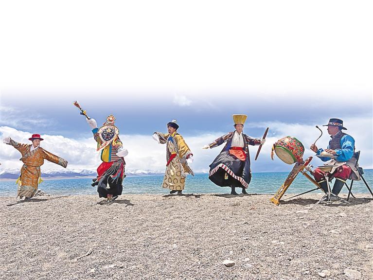 納木錯湖畔的藏戲表演。記者 劉斯宇 彭慶 劉琳琳 攝