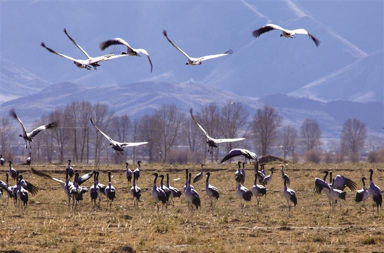 近年來,西藏不斷傳來新物種發(fā)現(xiàn)的喜訊。截至目前,西藏已記錄陸生野生脊椎動物有1072種,維管束植物7504種,這里是眾多珍稀野生動物的家園,藏羚羊、野牦牛、黑頸鶴、雪豹等國家一級保護動物在這里自由棲息。其中,藏羚羊種群數(shù)量已超過30萬只,黑頸鶴增加到1萬多只,曾被認為滅絕的西藏馬鹿如今也已超過800頭 。