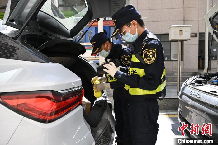 圖為西藏自治區(qū)日喀則市吉隆縣的吉隆口岸,海關(guān)工作人員在對(duì)出口的國(guó)產(chǎn)新能源汽車(chē)進(jìn)行檢查。貢嘎來(lái)松 攝