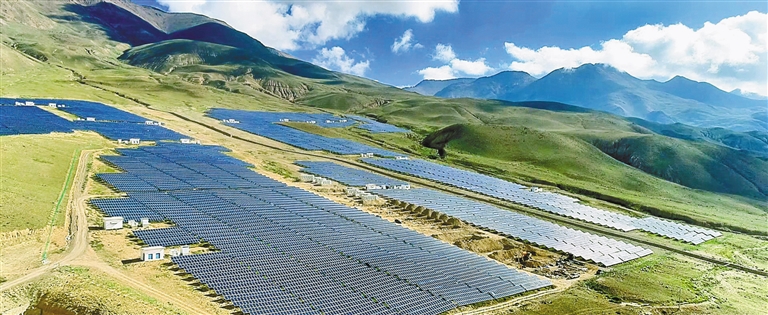 圖為措美縣城附近山坡上的一排排光伏發(fā)電板。措美縣融媒體中心供圖