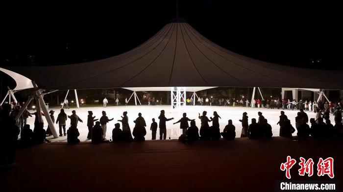 圖為當(dāng)?shù)孛癖娫谶_(dá)孜區(qū)社會主義核心價值觀主題公園跳鍋莊舞。達(dá)孜區(qū)委宣傳部供圖