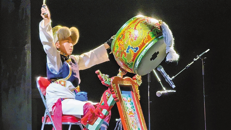 扎西多吉從小學一年級起便跟隨老師學藝,憑借扎實功底曾在“中國少兒戲曲小梅花薈萃”活動中獲得“小梅花”稱號?!八竟氖遣貞虻撵`魂節(jié)奏,每一次擊打都要帶著對傳統(tǒng)文化的敬意。”這位14歲少年的專注與執(zhí)著,不僅收獲了藝術(shù)成就,更錘煉出沉穩(wěn)大氣的品格。母親措姆欣慰地表示:“看著孩子在藏戲?qū)W習中成長,是最幸福的事?!?/p>