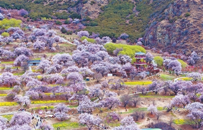 今年4月桃花節(jié)期間,嘎拉村接待游客11萬(wàn)余人次,旅游收入達(dá)360萬(wàn)元?!百p花的門(mén)票、群眾開(kāi)攤位、村里辦民宿……這些有力地支撐了村民增收,大家對(duì)這些桃樹(shù)都寶貝得不得了?!边叞透锌?。