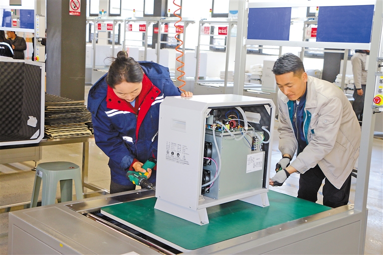 湖北援藏企業(yè)西藏清匠電器科技有限公司的工人正在組裝制氧機。