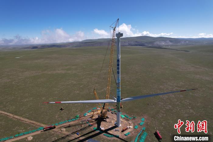 在海拔4700米的藏北高原,隨著13#風(fēng)機葉輪與機艙精準對接,西藏開投色尼區(qū)曲果嘎姆200MW風(fēng)電項目首臺風(fēng)電機組5日在西藏那曲順利完成吊裝。