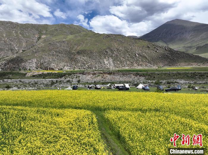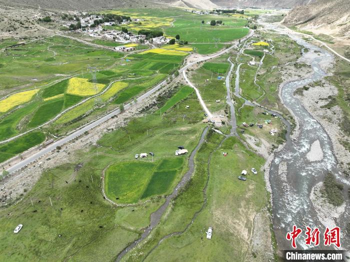 7月5日,西藏拉薩市風(fēng)和日麗,宜人周末里,市民紛紛前往近郊“過林卡”。在堆龍德慶區(qū)古榮鎮(zhèn)楚布溝,帳篷林立,歡聲笑語不斷。人們圍坐野餐,享受美食,伴著高原美景談天歌唱,孩童嬉戲奔跑,在自然中放松身心,延續(xù)傳統(tǒng)休閑樂趣 。圖為市民在楚布溝里“過林卡”。(無人機照片)中新社記者 貢嘎來松 攝