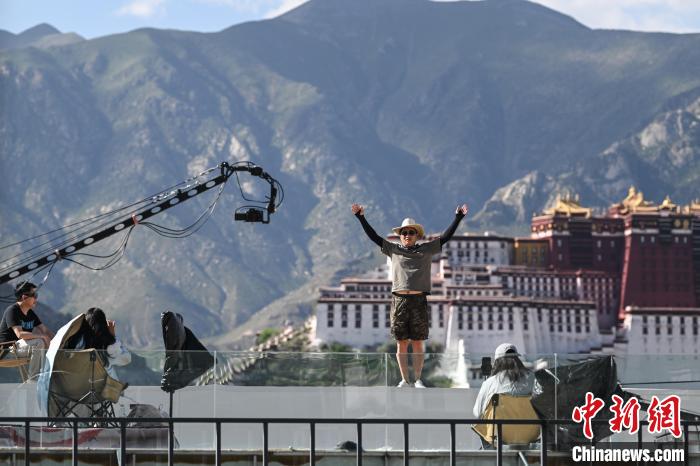 7月7日,游客在西藏拉薩市的一家景觀咖啡廳拍攝以布達(dá)拉宮為背景的 “旱地拔蔥” ?!昂档匕问[” 式的創(chuàng)意拍攝在拉薩掀起打卡熱潮。游客借助搖臂攝像機(jī),高高躍起,與雄偉的布達(dá)拉宮同框,拍出極具視覺沖擊力的“電影級”大片。據(jù)悉,拍攝“旱地拔蔥”的景觀咖啡廳從今年5月開業(yè)以來,平均每天接待游客300到500人次。中新社記者 貢嘎來松 攝