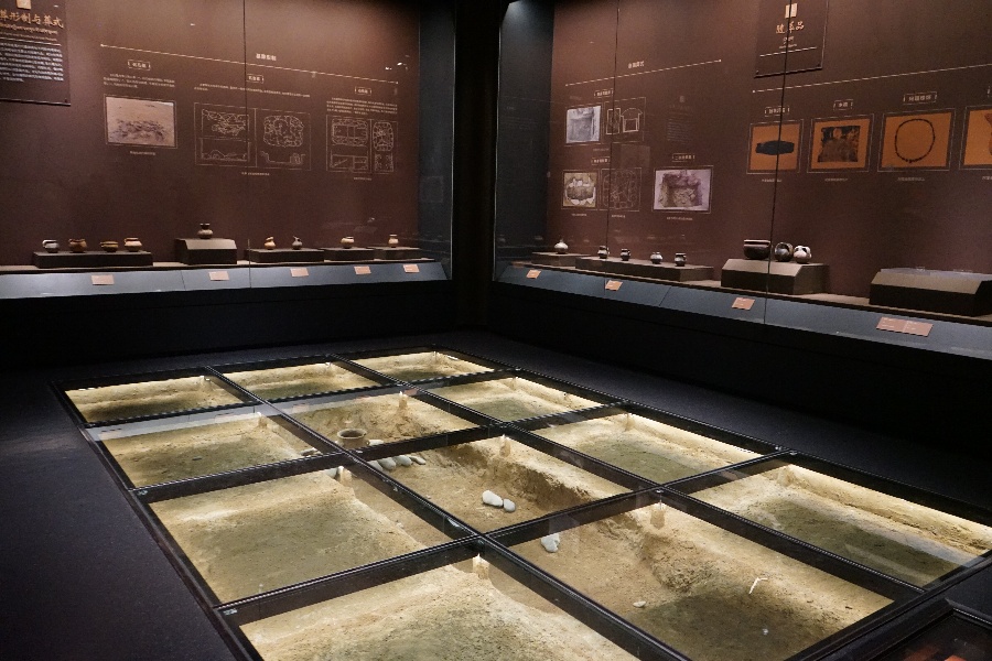 曲踏墓地目前共發(fā)現(xiàn)洞式墓葬8座,復(fù)原展示的即3號(hào)墓葬,坑深4.7米,坑口長(zhǎng)2.3米,寬0.7米。在墓坑?xùn)|端填土表面發(fā)現(xiàn)石頭堆砌的簡(jiǎn)易祭臺(tái),內(nèi)放一個(gè)帶流陶罐,陶罐周邊散落一些羊骨,為一處祭祀墓主人的遺跡。“看到這樣的復(fù)原展示,讓我對(duì)考古發(fā)掘和歷史文化有了更直觀、科學(xué)的認(rèn)識(shí)?!币晃徽趨⒂^的觀眾表示。