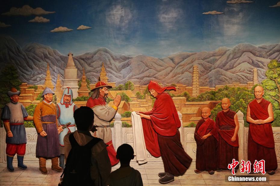 7月15日,在位于西藏拉薩的西藏博物館,觀眾參觀“涼州會談”場景,“涼州會談”結(jié)束了吐蕃地方政權(quán)對西藏的長期分治局面,順應了國家統(tǒng)一的歷史潮流。據(jù)了解,西藏博物館設有基本陳列《雪域長歌—西藏歷史文化展》《離太陽最近的人—西藏民俗文化展》,充分展示西藏地區(qū)歷史發(fā)展進程與文化面貌。中新社記者 張祥毅 攝