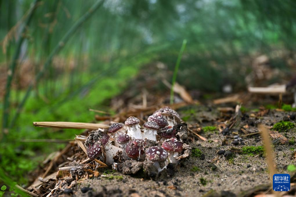 這是西藏扎囊縣綠之源現(xiàn)代農(nóng)業(yè)科技股份有限公司有機蘆筍大棚內(nèi)發(fā)展“蘆筍林下經(jīng)濟”試種成功的赤松茸(7月19日攝)。新華社記者 李鑫 攝
